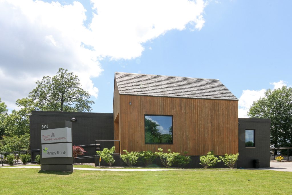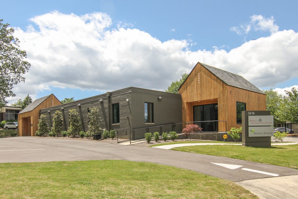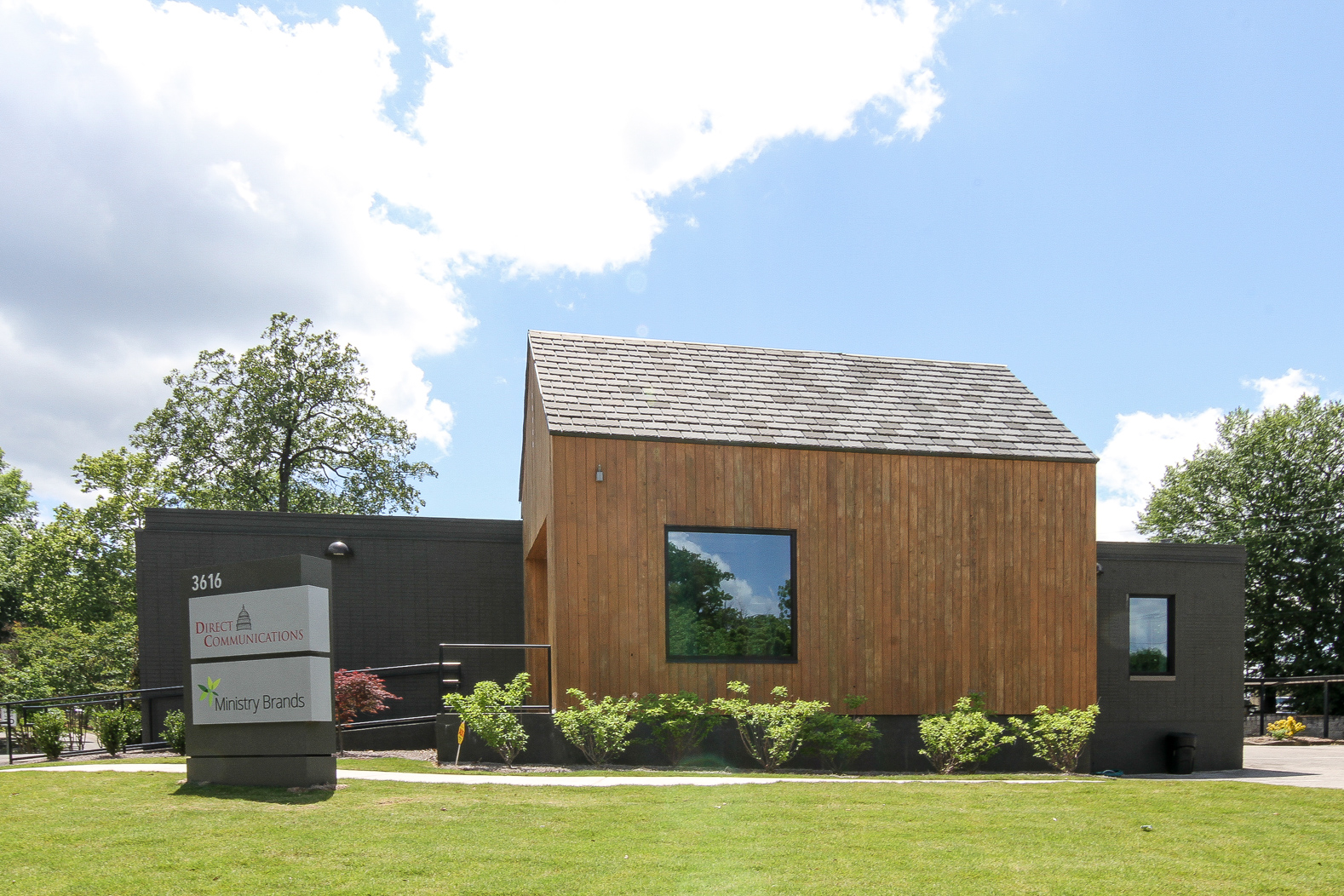 Our design concept is centered on two new building entry elements (one for the client, the other for a future tenant) located at the original entry and at an existing loading dock. These two elements are focal points for the building, and utilize contrasting materials on pure gable roof forms. Out of concern for the project budget, most of the other exterior modification are limited to new windows and painted brick. Because of this strategy, the impact of the more expensive entry elements was mitigated.