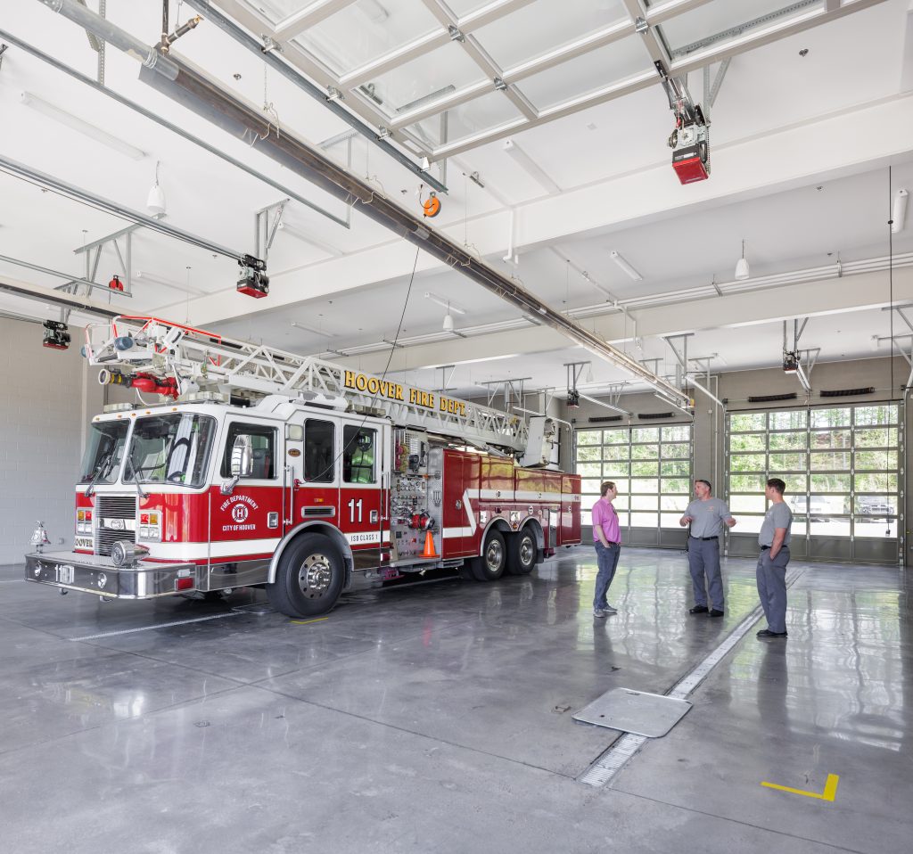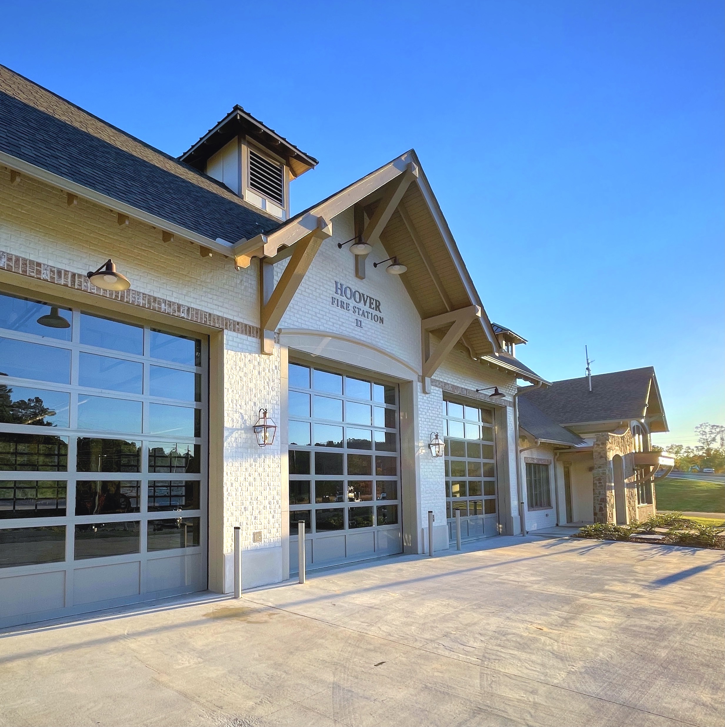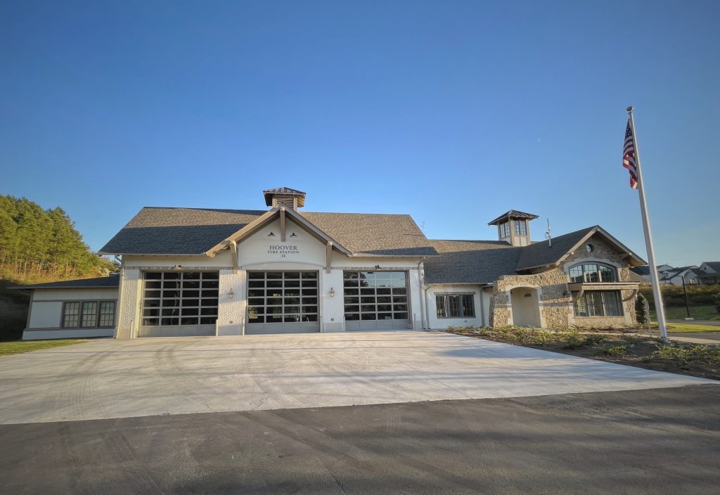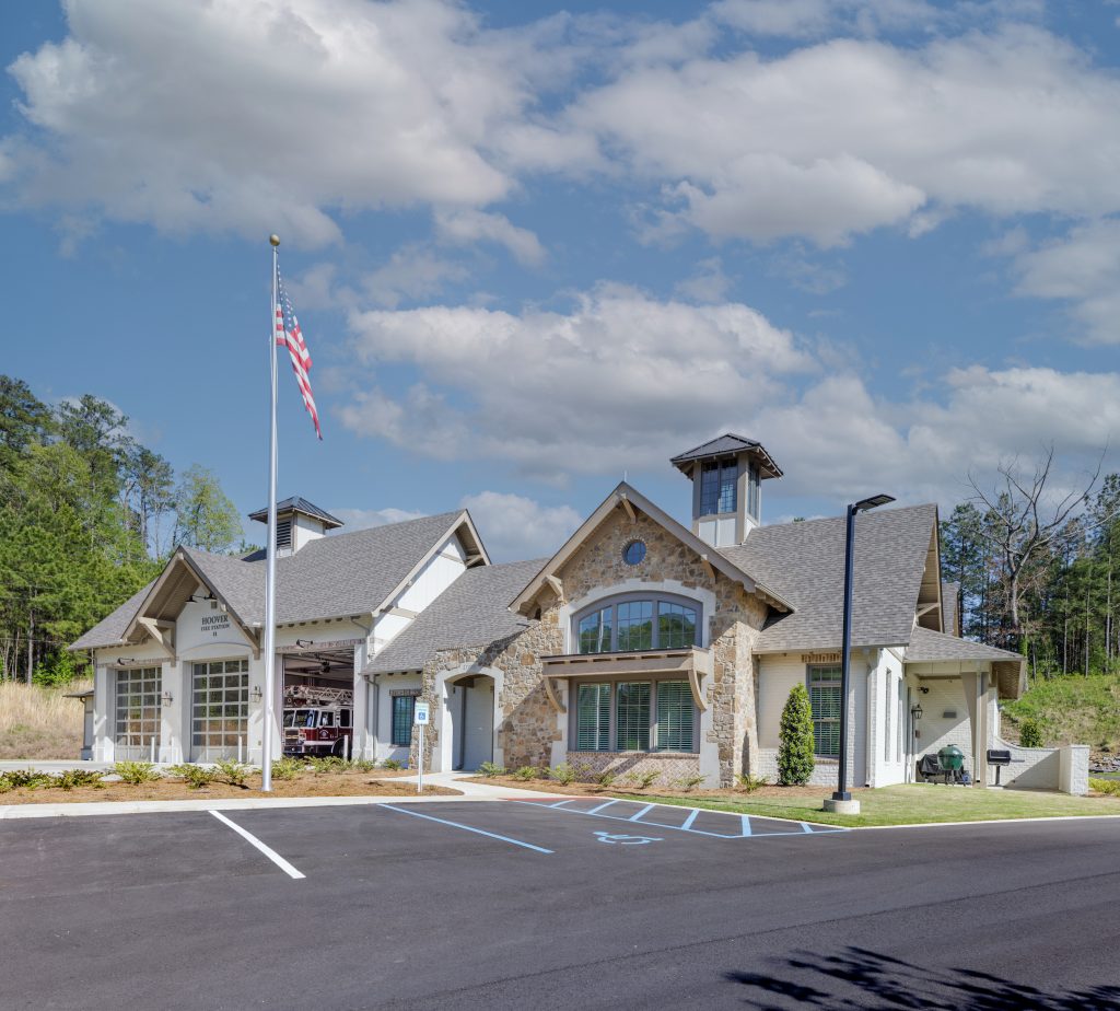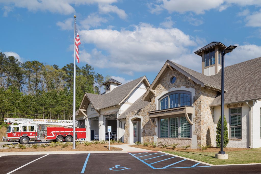 Hoover Fire Station No. 11 is an 8,845 square foot fire station nestled within a growing, planned, residential community. Because of the proximity to the surrounding houses, the fire station required the unique subtleties and detailing of residential design mixed with civic undertones, the main objective being to create an efficient emergency facility.