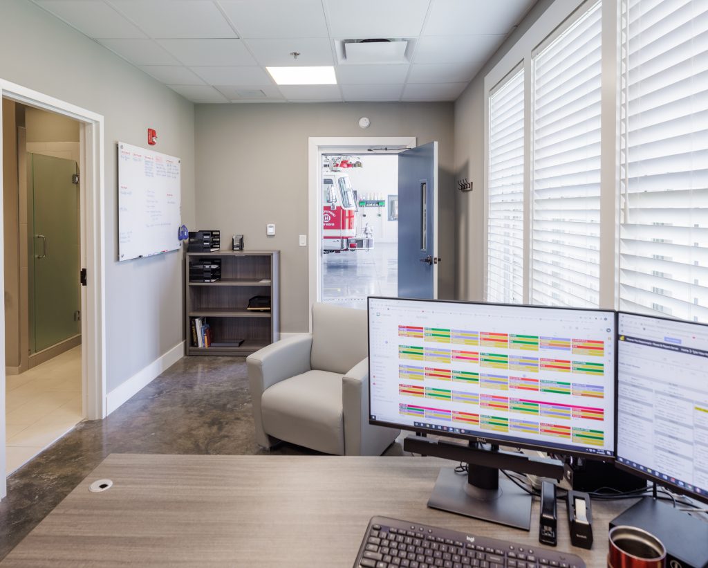 Collaboration with the Fire Chief allowed the design team to understand the unique needs of the Fire Station. The information gathered in these meetings helped to understand how to site the building allowing the fire engines to move efficiently around building.