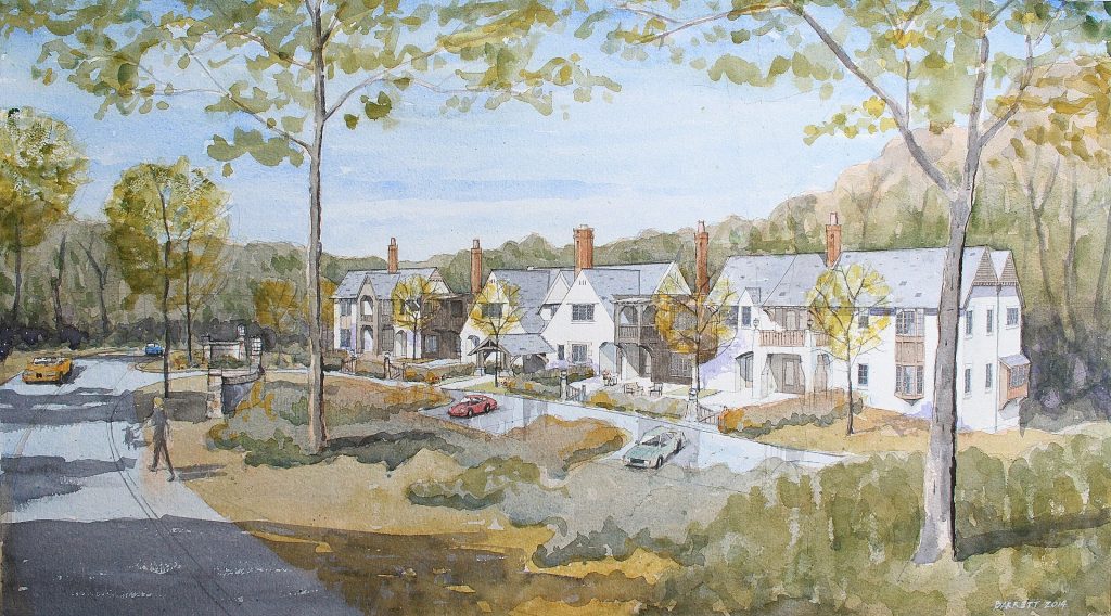 Located on Cahaba Road between Mountain Brook Village and English Village, this fourteen-residence, high-end condominium provides a range of homes from 1,500 square feet up to 3,000 square feet. Barrett Studio worked closely with the City of Mountain Brook to develop the right scale for the project, designing a building that works within the massing comparable to three to four large single family homes. When the project went before the Planning Commission and the Board of Zoning Adjustments, it was approved unanimously — a testament to Barrett Studio’s value of communication and thoroughness in seeking to gain a project’s acceptance. The Arts and Crafts architecture harkens back to the work of C.F. Voysey, who designed beautiful English country homes during the same time period that Birmingham was experiencing extensive growth. The building is named for Warren H. Manning, the Boston-based Landscape Architect who designed the master plan for Mountain Brook for developer Robert Jemison, Junior.